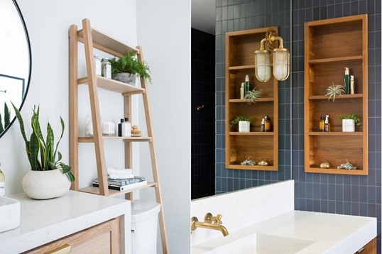 – Tận dụng tối đa diện tích: Sử dụng những khu vực góc, tường, phía trên bồn cầu hoặc dưới bồn rửa.